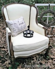 Gorgeous transformation from Curb Alert! {blog} with General Finishes French Vanilla Chalk Style Paint! Tami of Curb Alert says, "I painted the chair upholstery and cording with three coats of paint, allowing them to dry 24 hours between each...