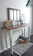 Can't get enough of this entry way table from Team Sutton Designs! Team Sutton Designs says, "I used a base coat of General Finishes "Dark Chocolate," and sprayed two coats of "Antique White," then distressed to let the brown show through. The...