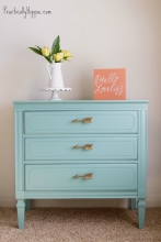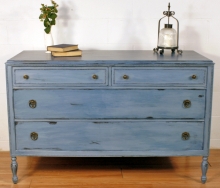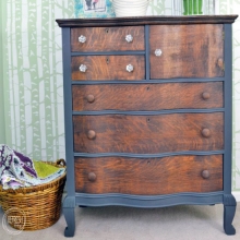 We absolutely adore this dresser by Jenni of Roots & Wings Furniture! Jenni says, "This dresser was painted in General Finishes new Chalk Style Paint in Stillwater Blue. I sealed it with Flat Out Flat Topcoat. Then watered down Coastal Blue...