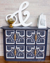 Absolutely loving this GF Midnight Blue Chalk Style Paint cabinet from Cupcakes and Crowbars! Dee of Cupcakes and Crowbars says, "I LOVE this cabinet now, and am so glad I didn’t banish it to the yard sale realm. If I had, I wouldn’t have had the...