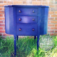 "This sewing cabinet from last spring was a labor of love. It was covered in years and years of dirt and grime and I spent two days scrubbing this little guy down! Coastal Blue by General Finishes is one of my favorite colors to use!" - Little Red...