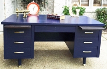 Junque With A Purpose refinished this handsome desk with General Finishes Coastal Blue Milk Paint and Java Gel on the slide out writing boards. The entire piece was also sealed with High Performance Topcoat.