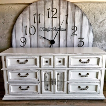 Totally Shabbique used GF Antique White Milk Paint to give this dresser a classic distressed look!