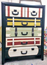 Susan Davis of Meme's Ewenique Boutique restyle this chest of drawers with General Finishes Black Pepper and Bayberry Green Chalk Style Paints as well as Sunglow and Snow White Milk Paints. It was aslo accented with GF Van Dyke Brown Glaze...