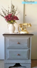 Anastasia Vintage gave this nightstand a face lift with General Finishes Empire Gray Chalk Style Paint, Java Gel Stain and Flat Out Flat Topcoat.
