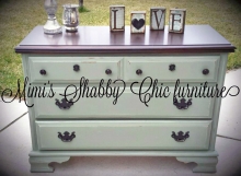 MiMi's Shabby Chic Furniture by Tonya Silva restyled this dresser with General Finishes Basil Milk Paint and Java Gel Stain. Gorgeous combination!