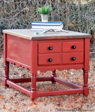 Angela of Number Fifty-Three gave this side table a stylish makeover with General Finishes Tuscan Red Milk Paint and Antique Walnut Gel Stain.