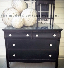 This sophisticated dresser was refinished with GF Lamp Black Milk Paint by The Modern Cottage Company_. Simply gorgeous!