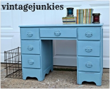 Loving this delightful desk re-style by Vintage Junkies. Looking great in General Finishes Halcyon Blue Milk Paint!