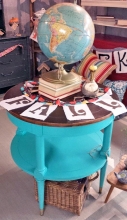 Loving this adorable table shared by Front Porch Pickin ' Vintage Emporium_. It was refinished by Lynn Robinson Cribbs with General Finishes Patina Green Milk Paint and Java Gel Stain.