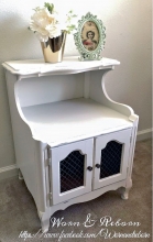 Just in love with this adorable, shabby chic cabinet/ side table. Painted with General Finishes Antique White Milk Paint and sealed with General Finishes High Performance Top Coat. This piece has been hand painted and lightly distressed. - Courtney...